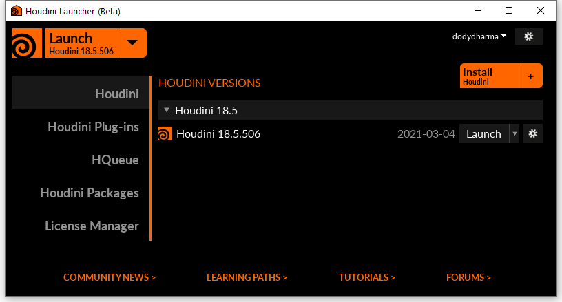 - Download and Install Houdini Launcher from https://www.sidefx.com/download/launcher/